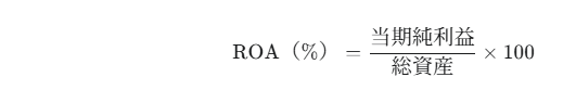 ROAの定義総資産(負債+純資産)に対して純利益を稼ぐ効率。